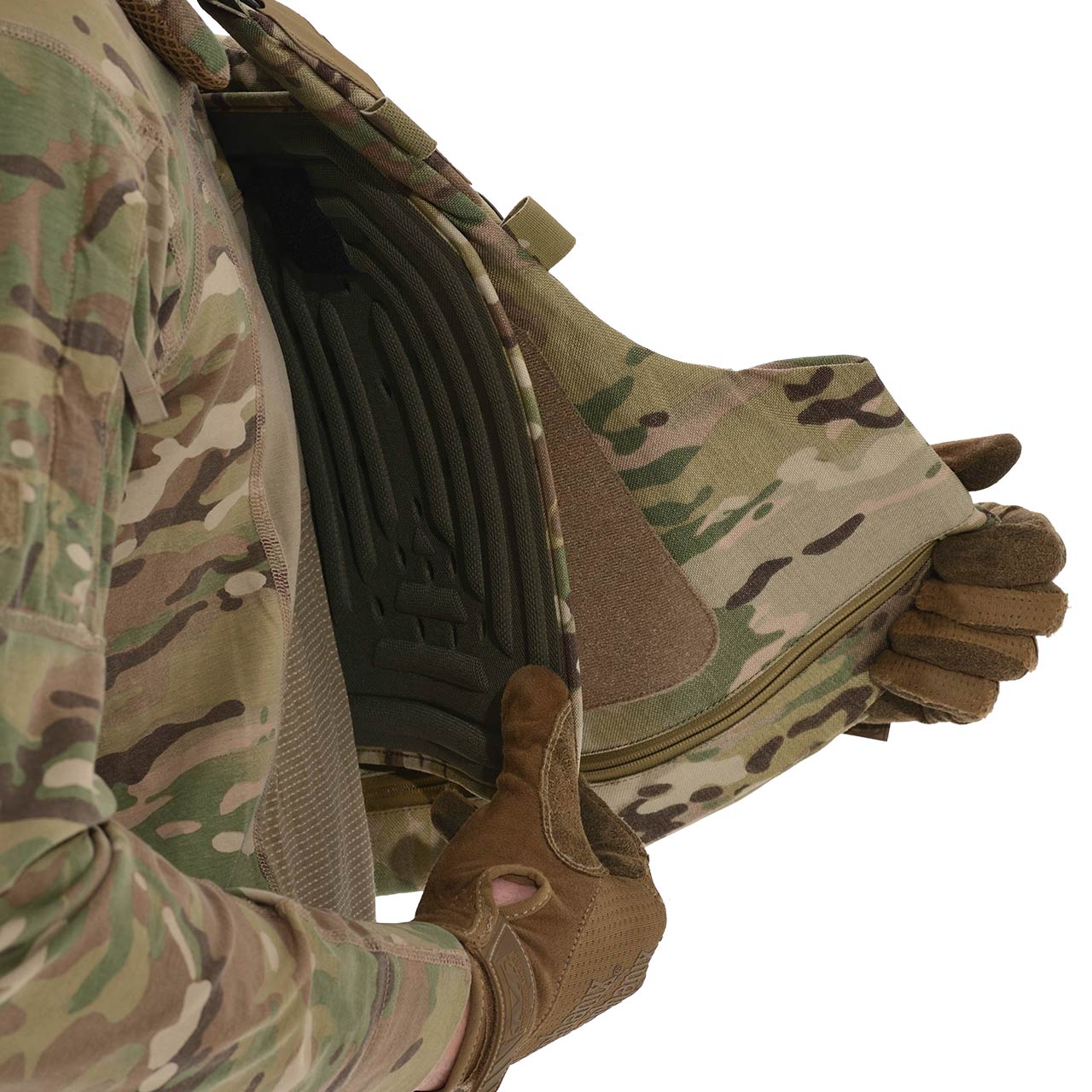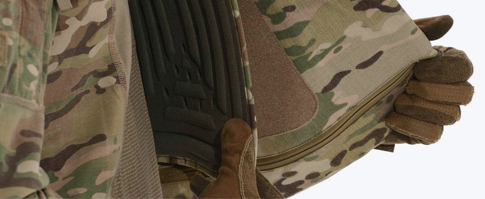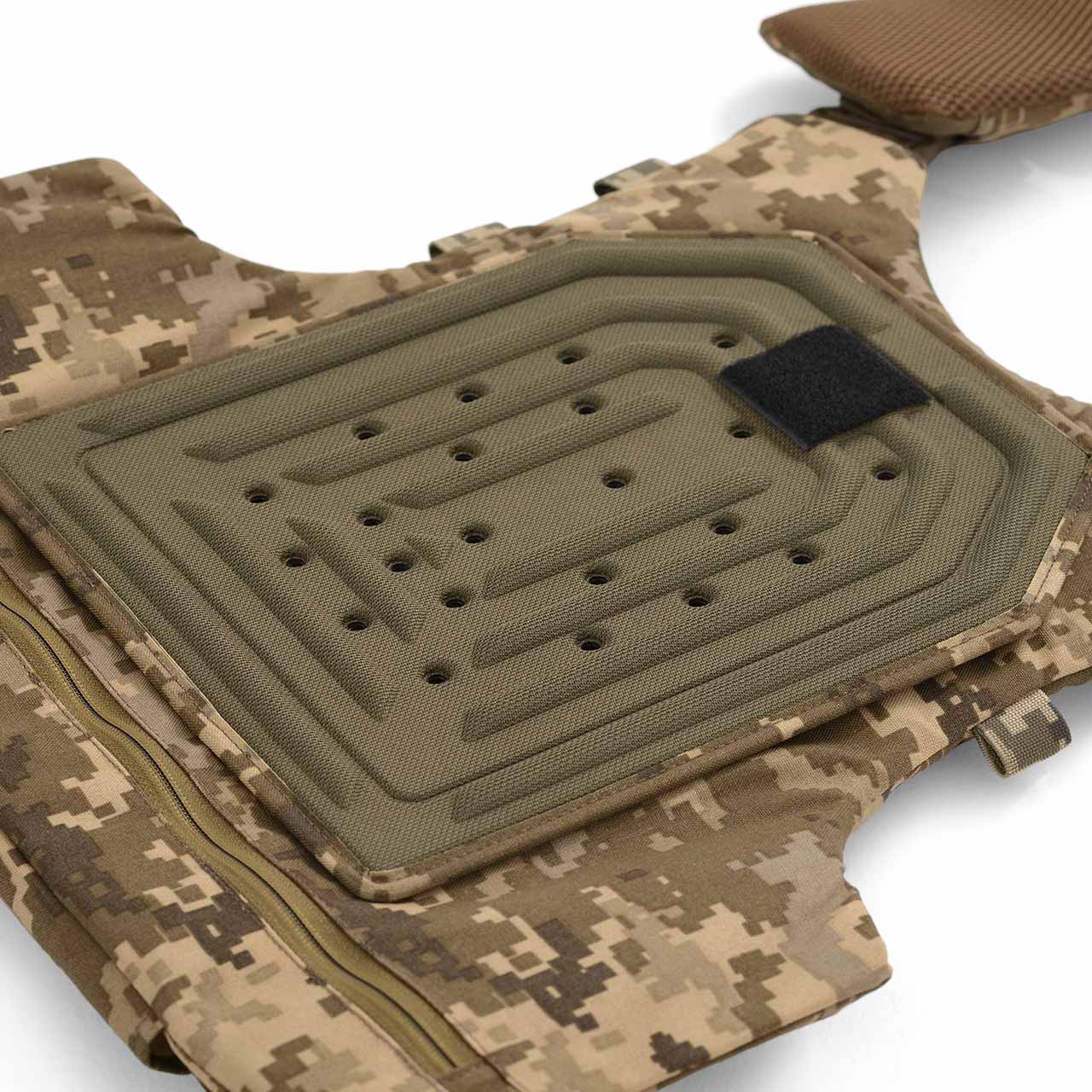 Анатомічний елемент, що зменшує навантаження від бронеплит і підвищує зручність. Жорсткі ребра конструкції сприяють поглинанню заброньової травми та рівномірному розподілу ударної енергії. Перфорована поверхня забезпечує вентиляцію, а форма — щільне прилягання без обмеження рухів. Кріпиться на Velcro та легко встановлюється. Додатково передбачене кріплення для горжета.